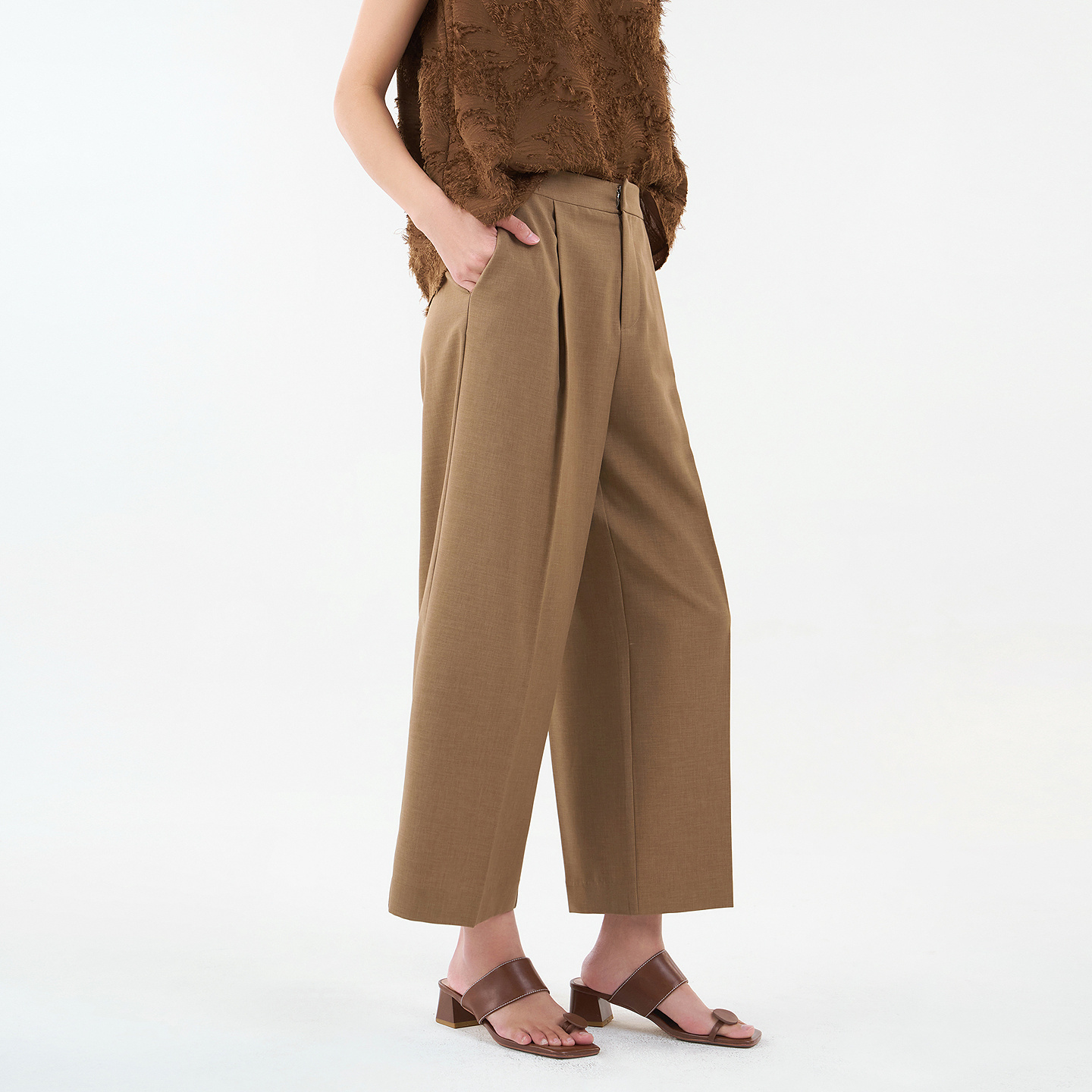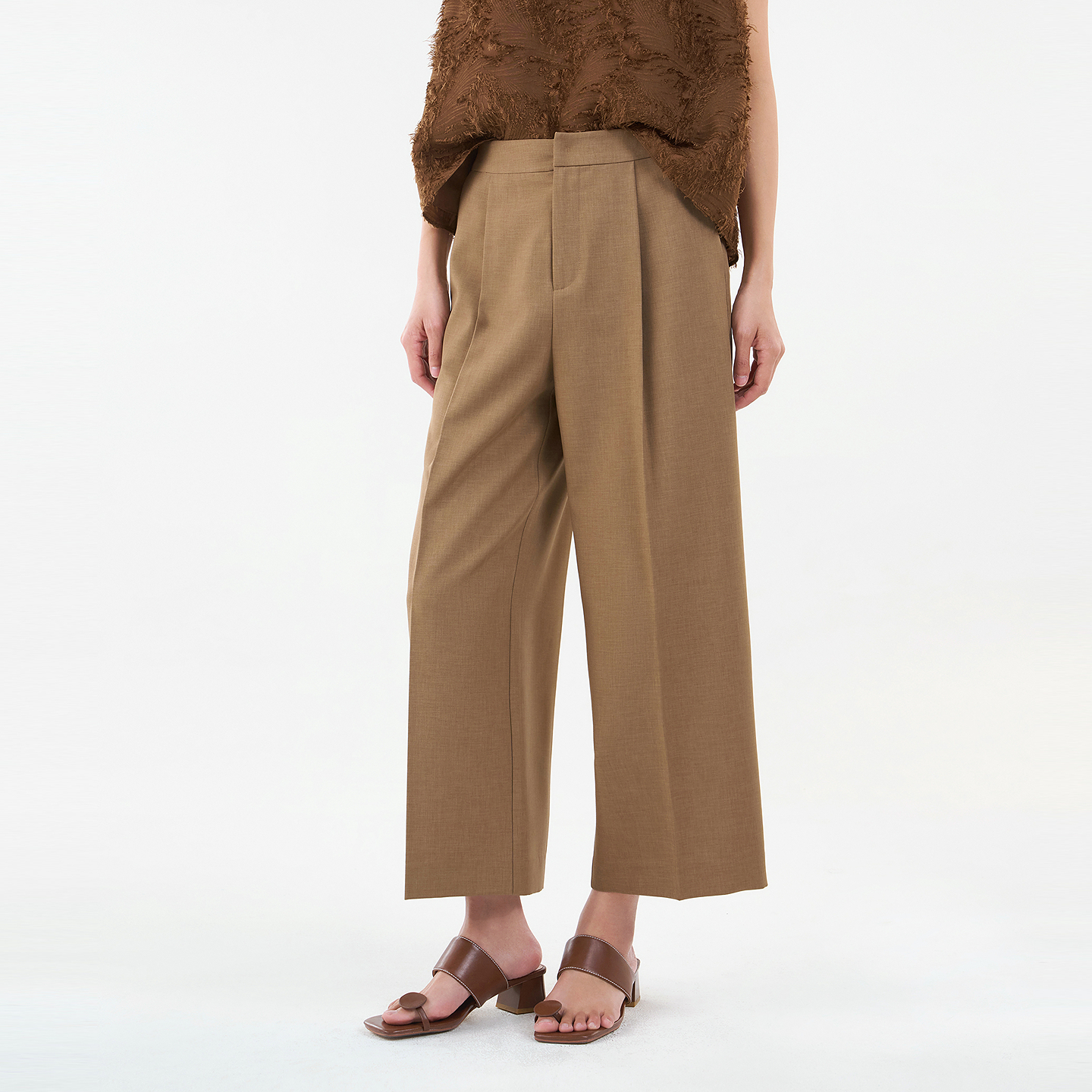 高腰垂感窄版 新款 羊毛西装 裤 卡其色阔腿裤 休闲直筒裤 女2025春秋季