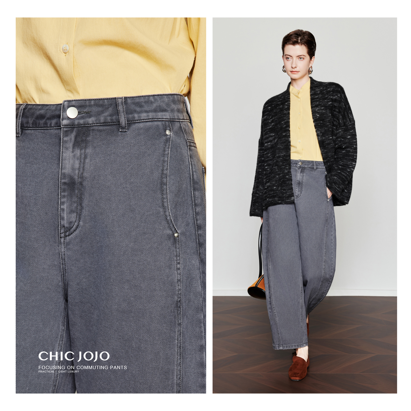 女25秋新款 CHICJOJO灰色牛仔裤 宽松简约九分香蕉裤 通勤简法