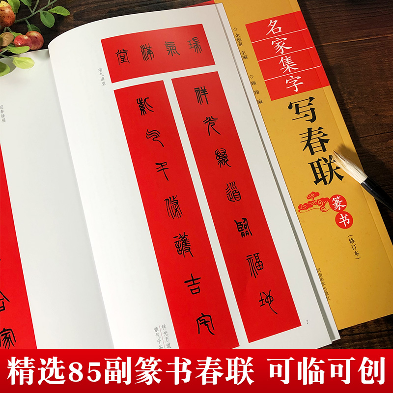 全85副七言横批福字篆体对联书作品集 篆书春联书法字帖名家集字写春联 全彩春联门对子春节集字毛笔书法练字帖 书