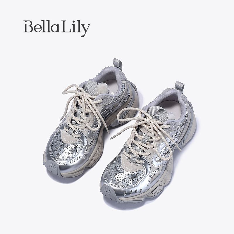 亮片休闲潮鞋 女增高运动鞋 厚底银色老爹鞋 BellaLily新款