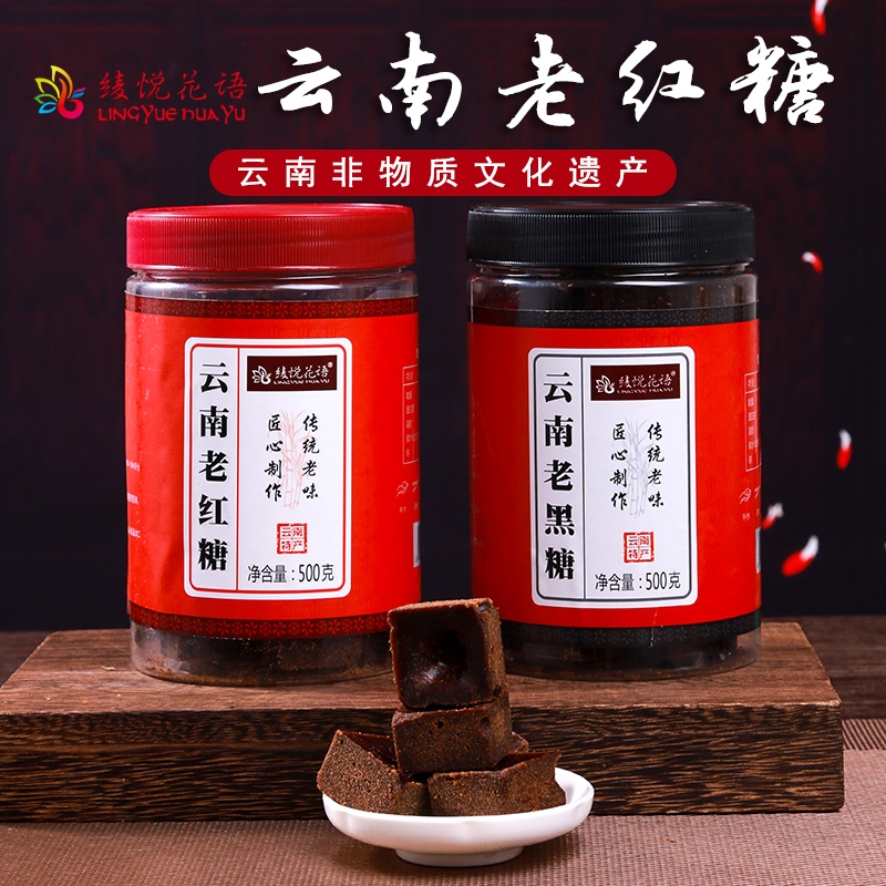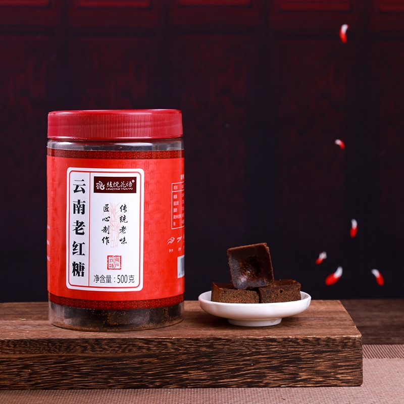 云南正宗老红糖黑糖块纯正甘蔗小块传统工艺古法红糖块500g罐装