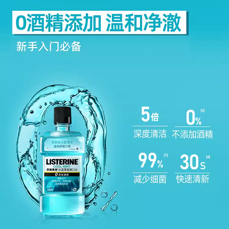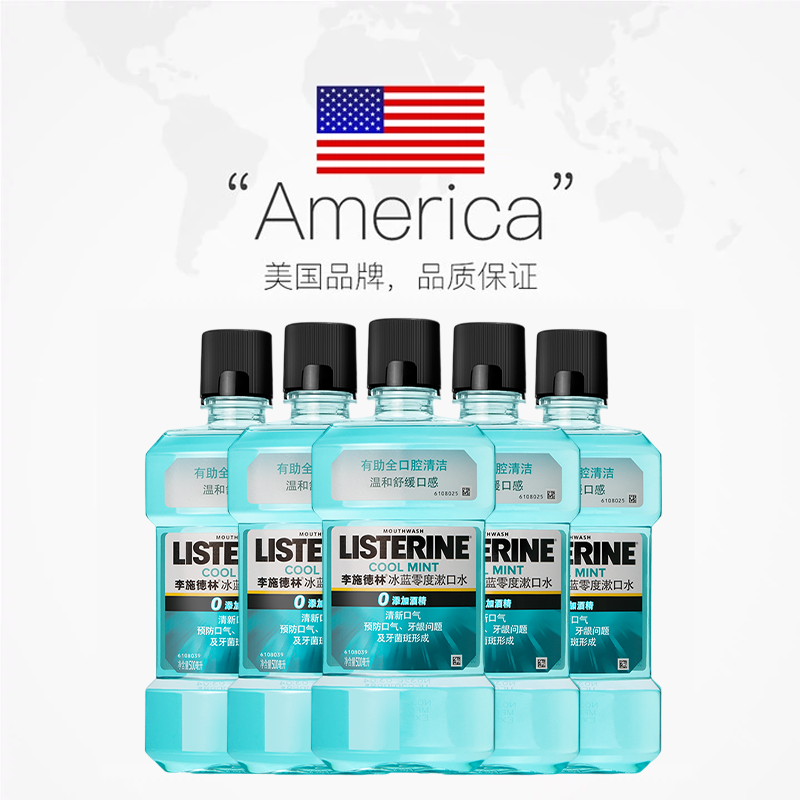 李施德林零度精油漱口水3瓶清新口气去口臭 汪顺同款 自营