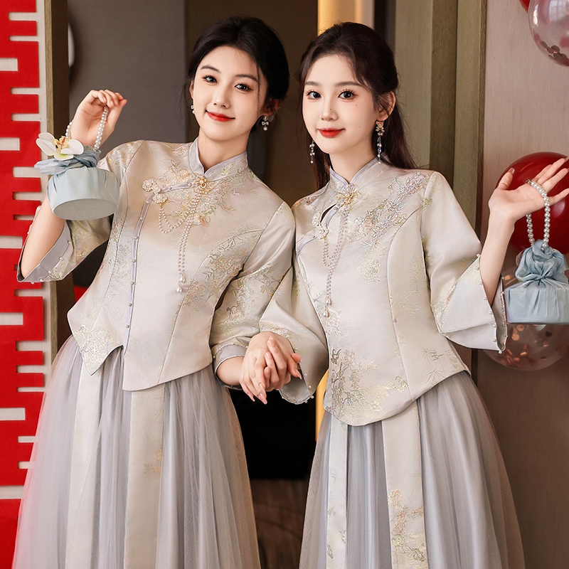 创意狐宴会礼服裙女长款 婚礼婚宴妈妈礼服改良旗袍连衣裙婆婆晚装