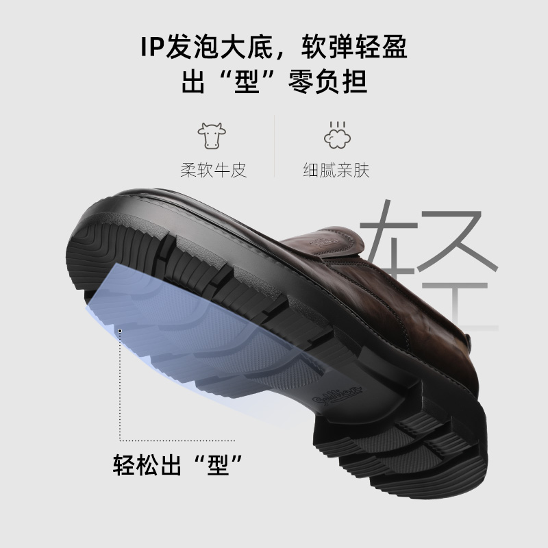 秋季 套脚乐福鞋 新款 男士 懒人一脚蹬商务厚底耐磨真皮鞋 金利来男鞋