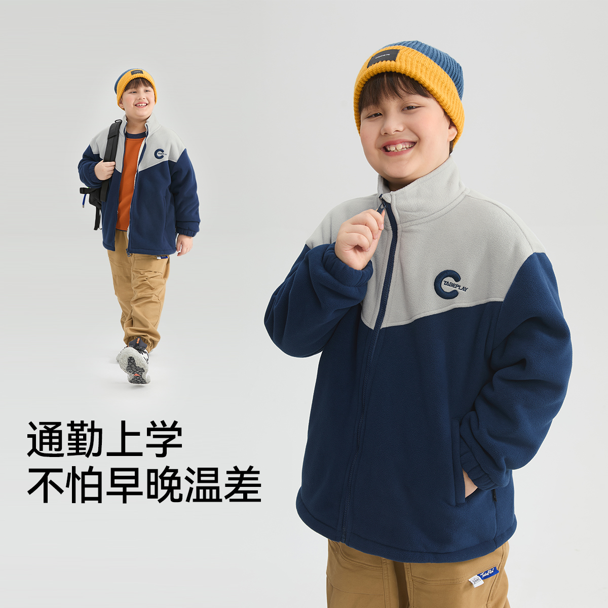 小猪托尼胖男童外套秋冬款 加绒加厚男大童羊羔绒摇粒绒加肥青少年