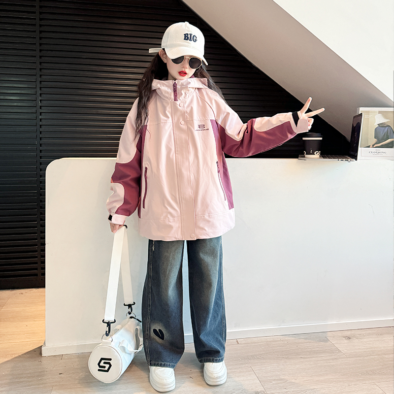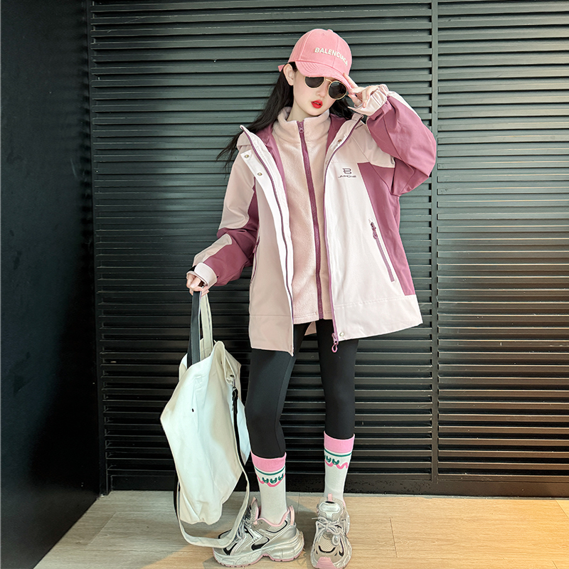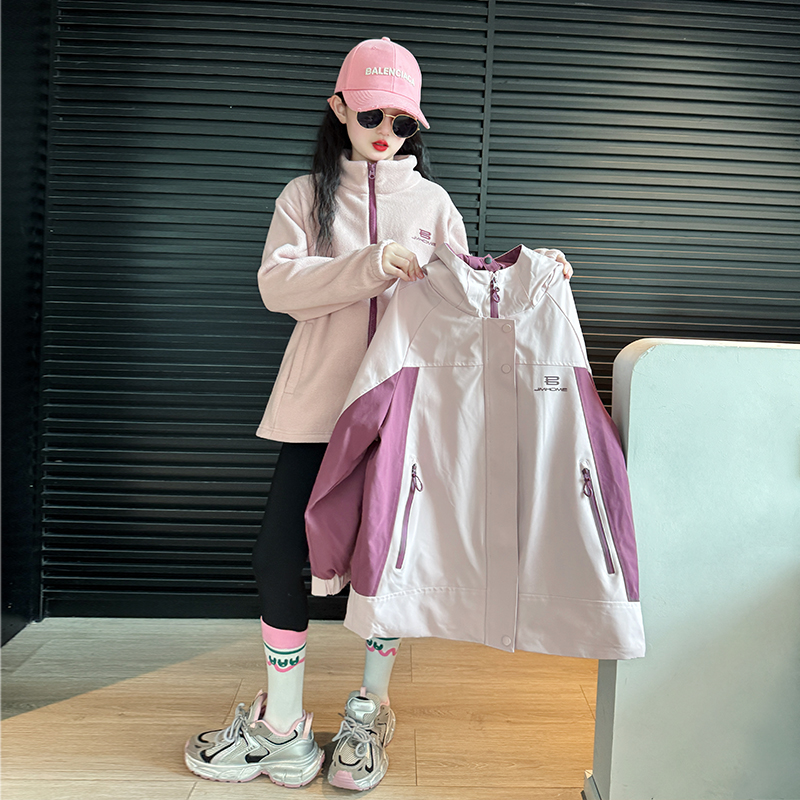 女童冲锋衣三合一可拆卸2025新款 大童女孩加厚外套 儿童洋气秋冬装