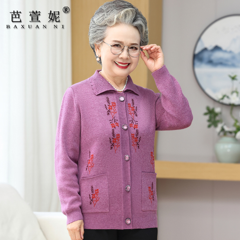 老人衣服太太加绒开衫 外套女中老年人毛衣妈妈秋冬新款 秋装 奶奶装