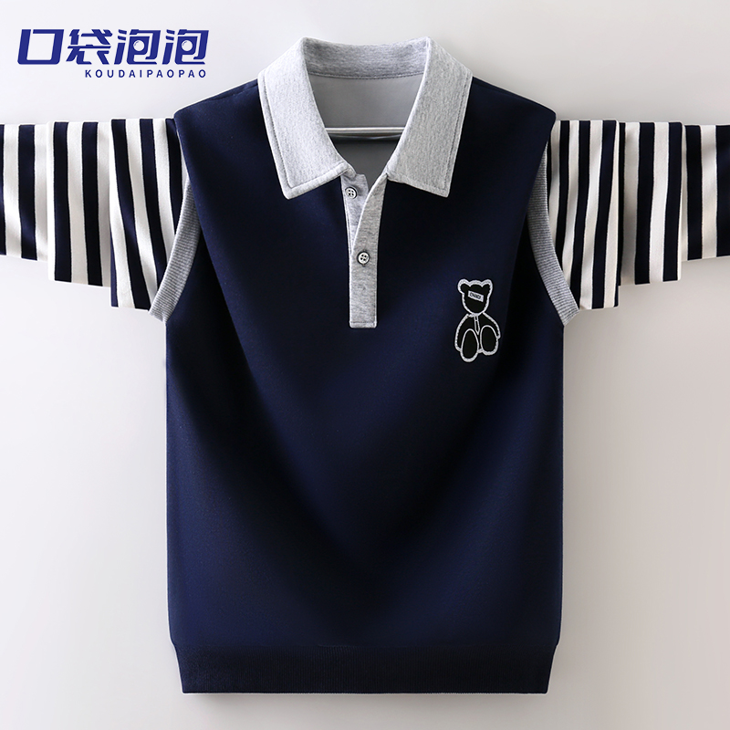 条纹上衣韩版 2025中大童长袖 洋气春 新款 男童卫衣条纹翻领打底秋季