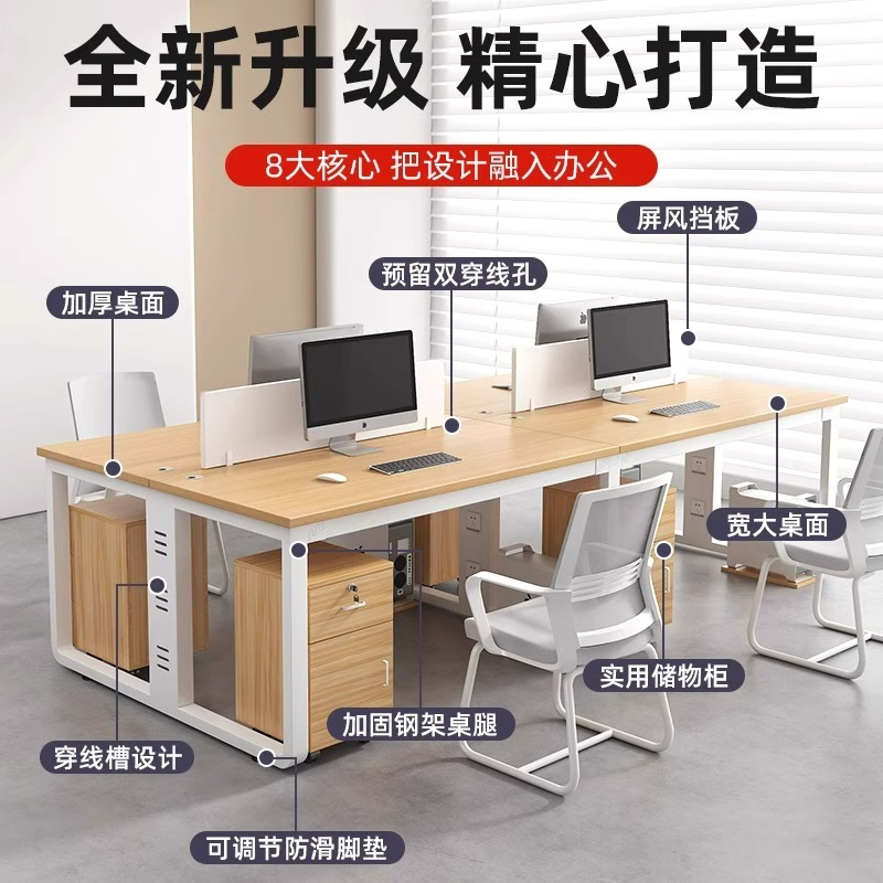 职员办公桌工位现代简约屏风卡座办公室双人4四人6人办公桌椅组合