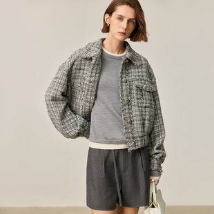 女装 LILY新款 绵羊毛混纺格纹小香风外套女短款 商场同款