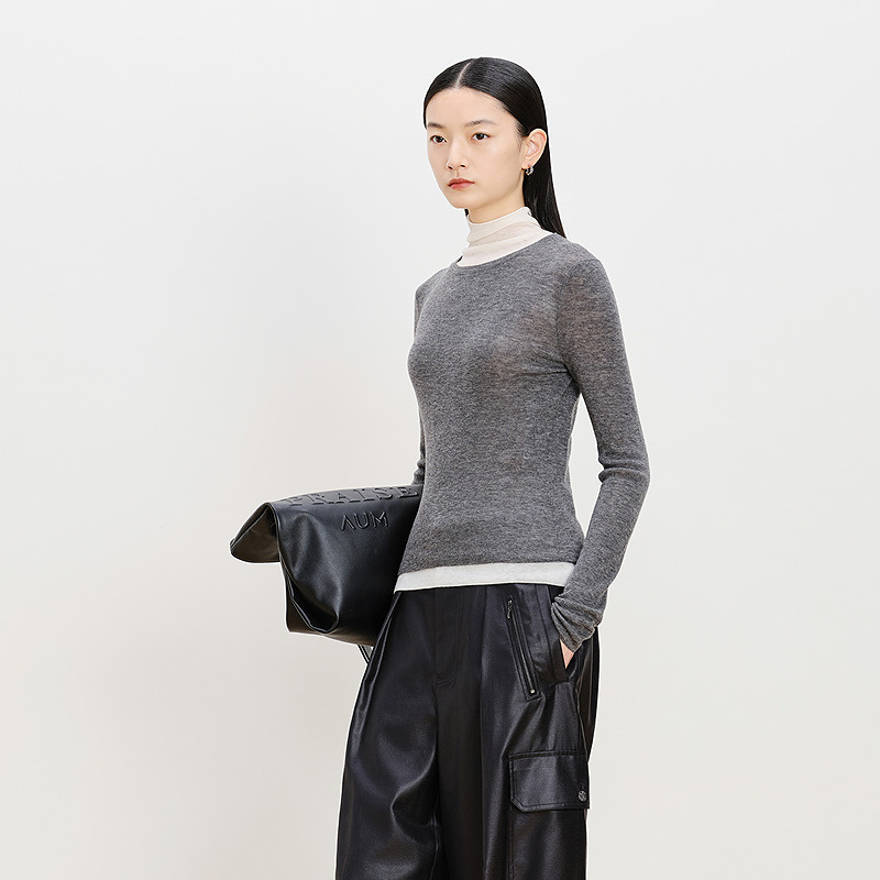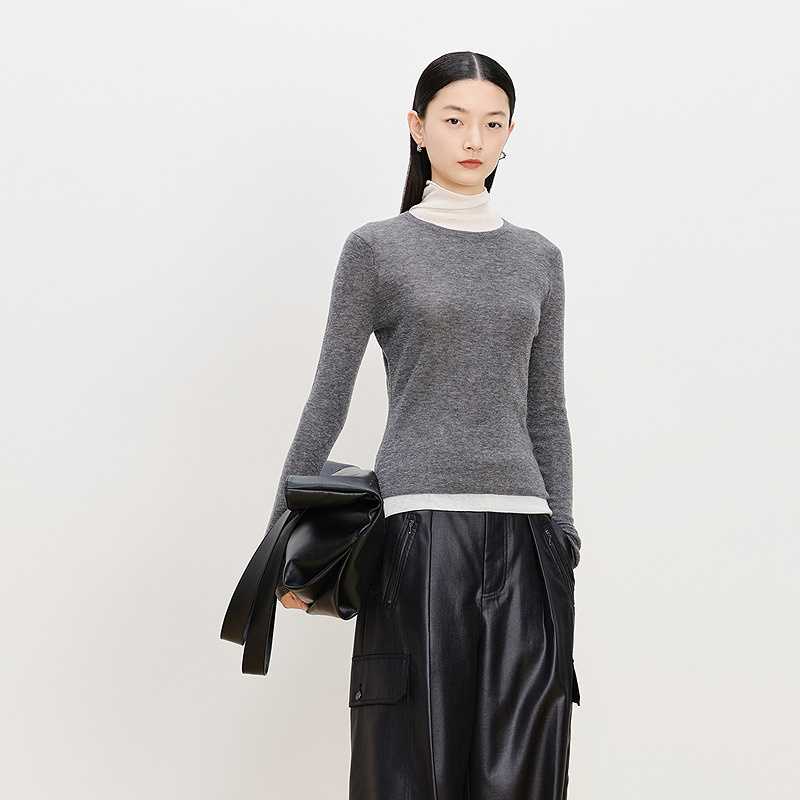 水溶羊毛气质中领假两件打底衫 AUM噢姆冬季 上衣女款 商场同款