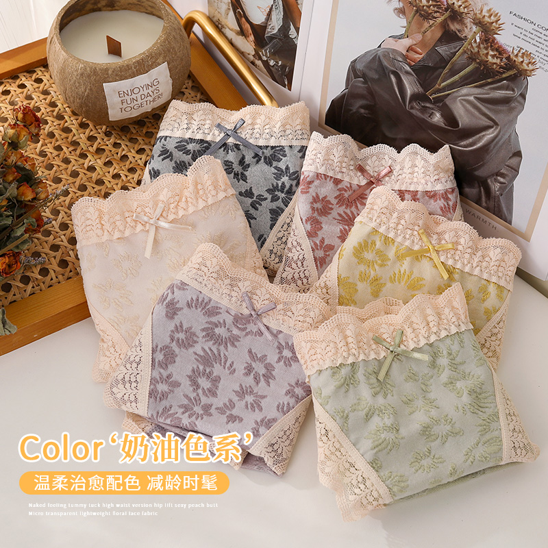 短裤 洁韵朵内裤 女低腰纯棉全棉抗菌裆无痕纯欲蕾丝边女生2025新款