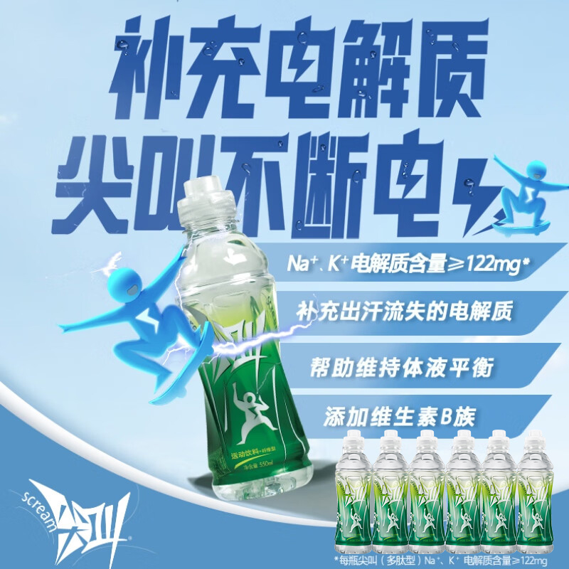 农夫山泉尖叫运动饮料紫色尖叫补水补充电解质550ml 多口味 15瓶装
