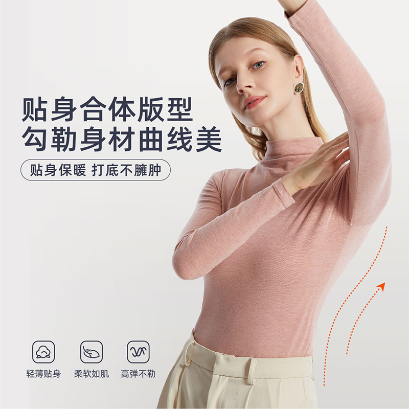 猫人暖绒无痕保暖上衣女士外穿高领内衣女打底秋衣紧身内搭上衣冬