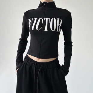 修身 打底衫 百搭上衣服 T恤女春秋内搭短款 设计感小众正肩纯棉长袖