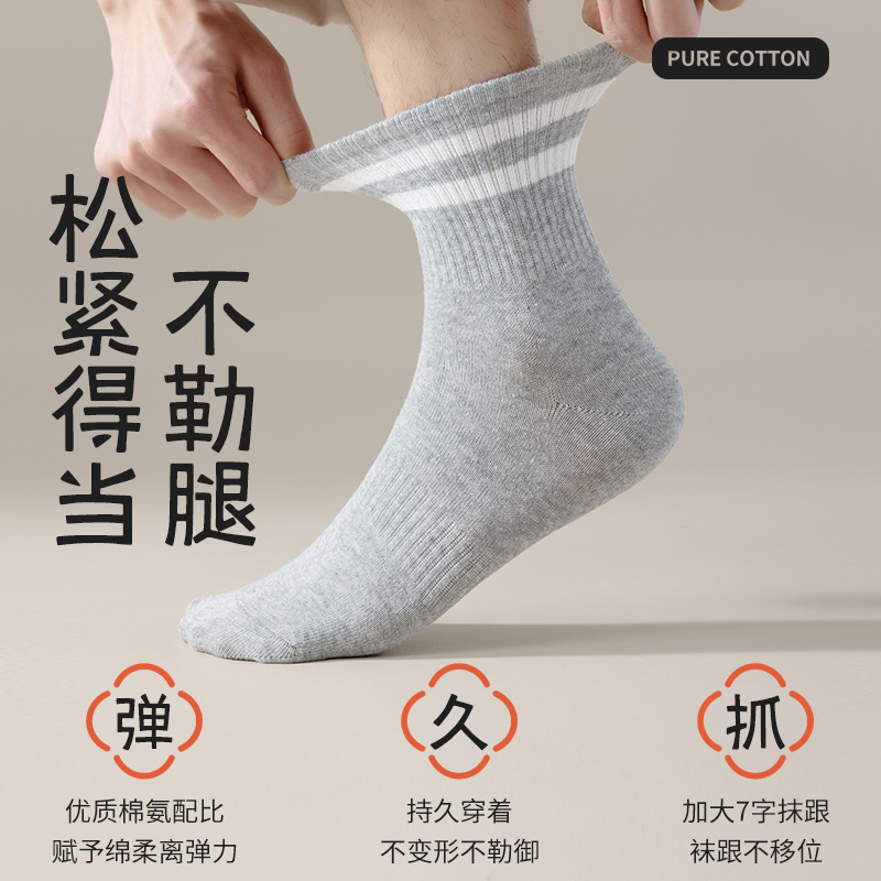 薄袜子男士 春秋中筒袜黑白色男生运动长袜吸汗短袜纯色诸暨袜子女