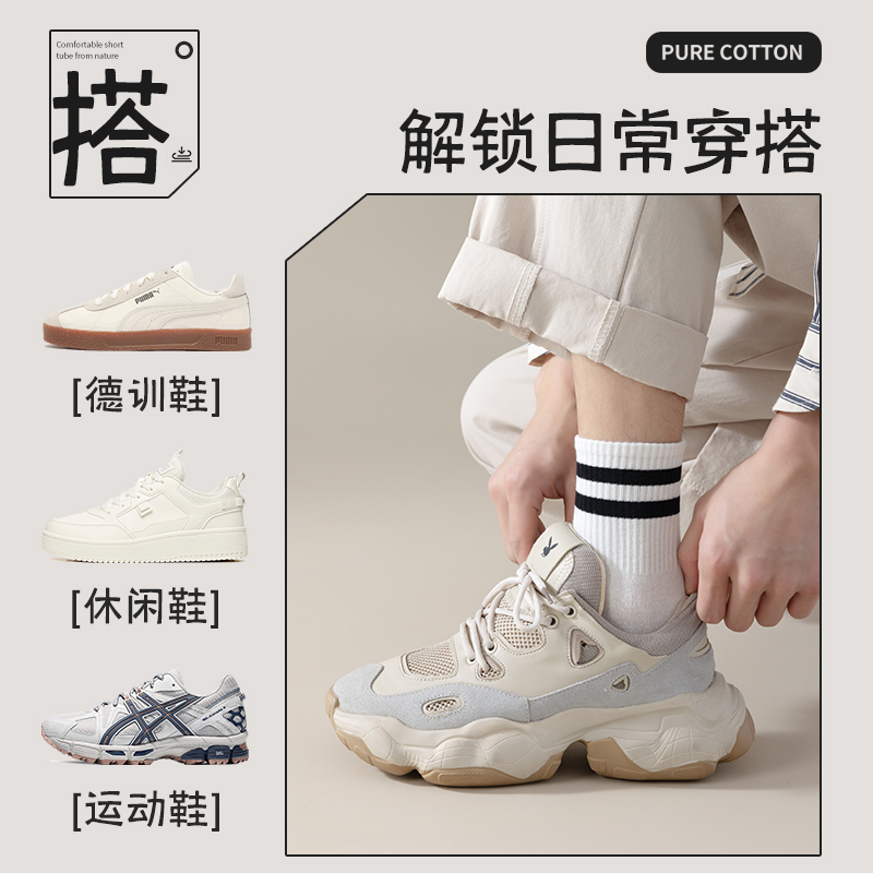 黑色商务棉袜 青少年男士 回力袜子男款 7A抗菌中筒袜吸汗防臭春秋季