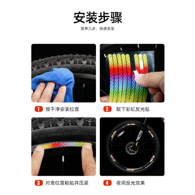 自行车夜光贴反光贴夜光贴纸儿童轮胎轮毂夜骑反光条装 饰配件车身