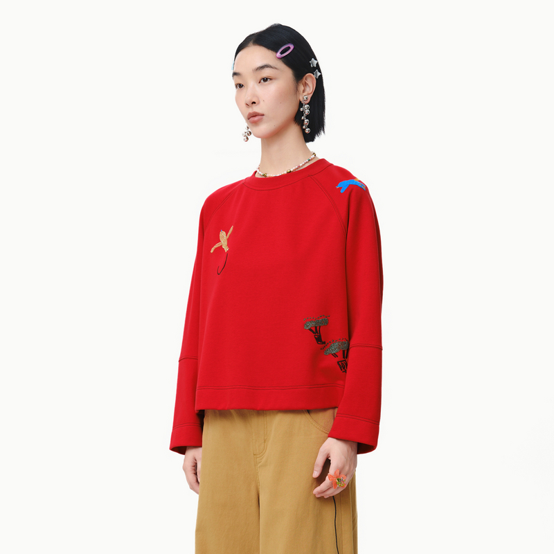 设计短款 .FUN系列圆领绣花插肩袖 卫衣女 新款 MOVEUP幻走2025春季