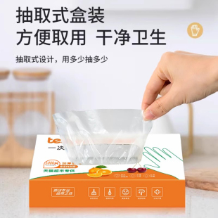 一次性手套食品级专用PE塑料商用餐饮透明加厚耐磨家用薄膜盒装