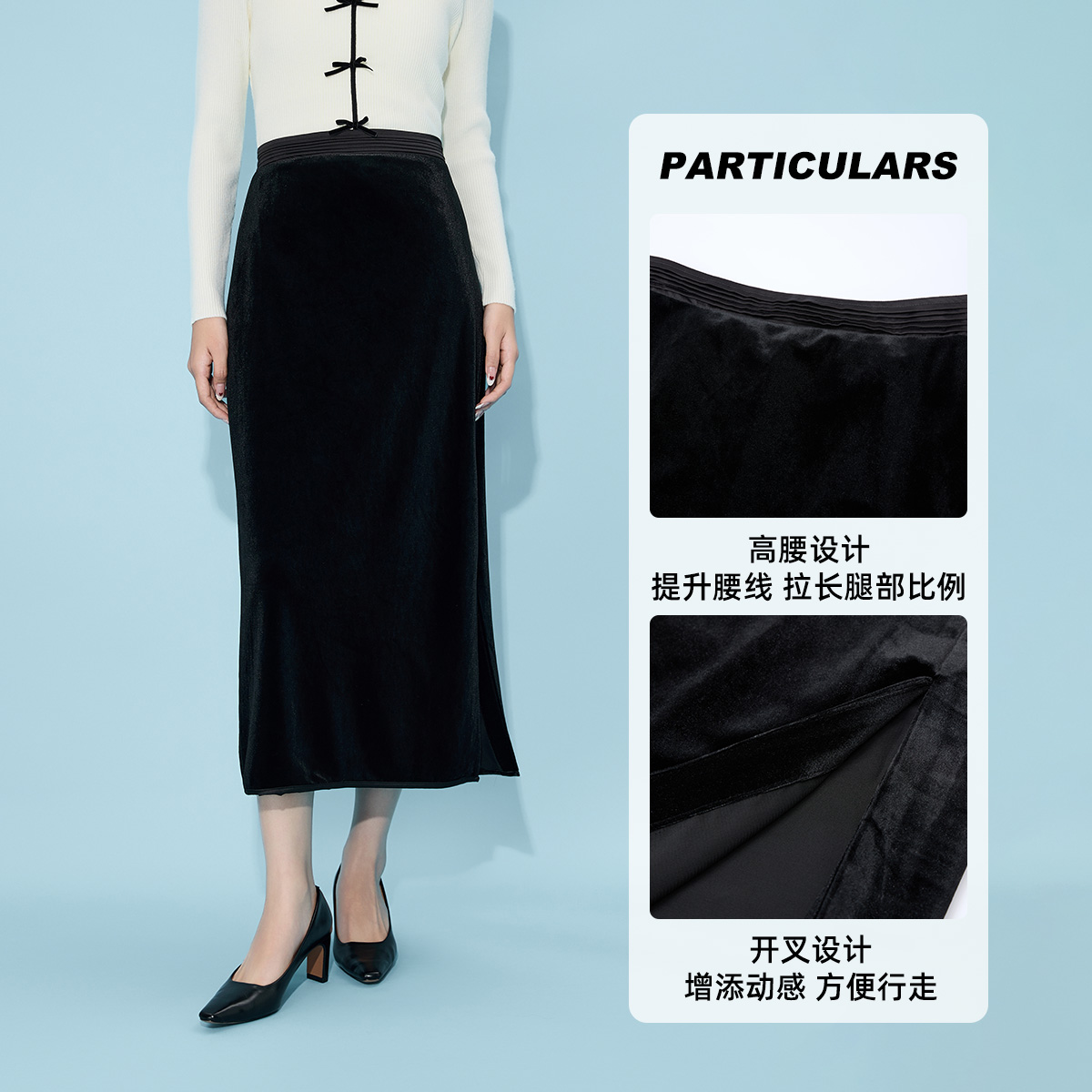 烫金网纱半身裙女秋冬开叉长裙HS0028 新中式 COCOBELLA 浮金碎影