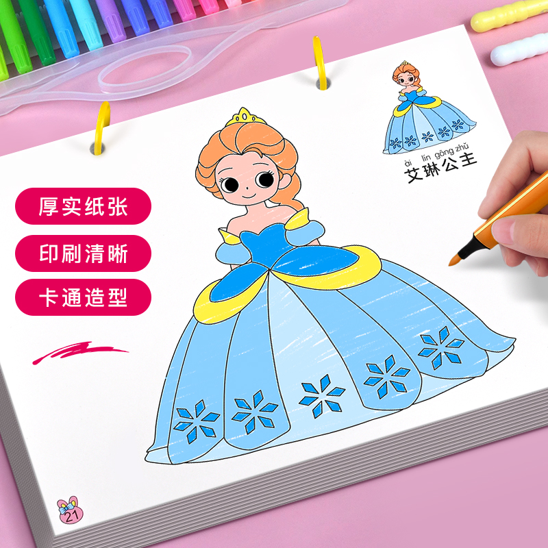 公主涂色本画画本儿童3 6岁绘画本女孩早教卡通趣味涂鸦本填色书