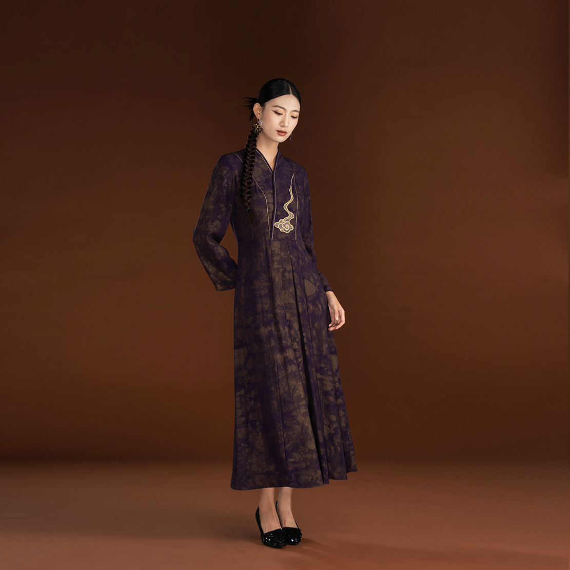 朗姿Basic衣橱 新款 法式 连衣裙冬季 女 高级感丝绒长裙气质修身