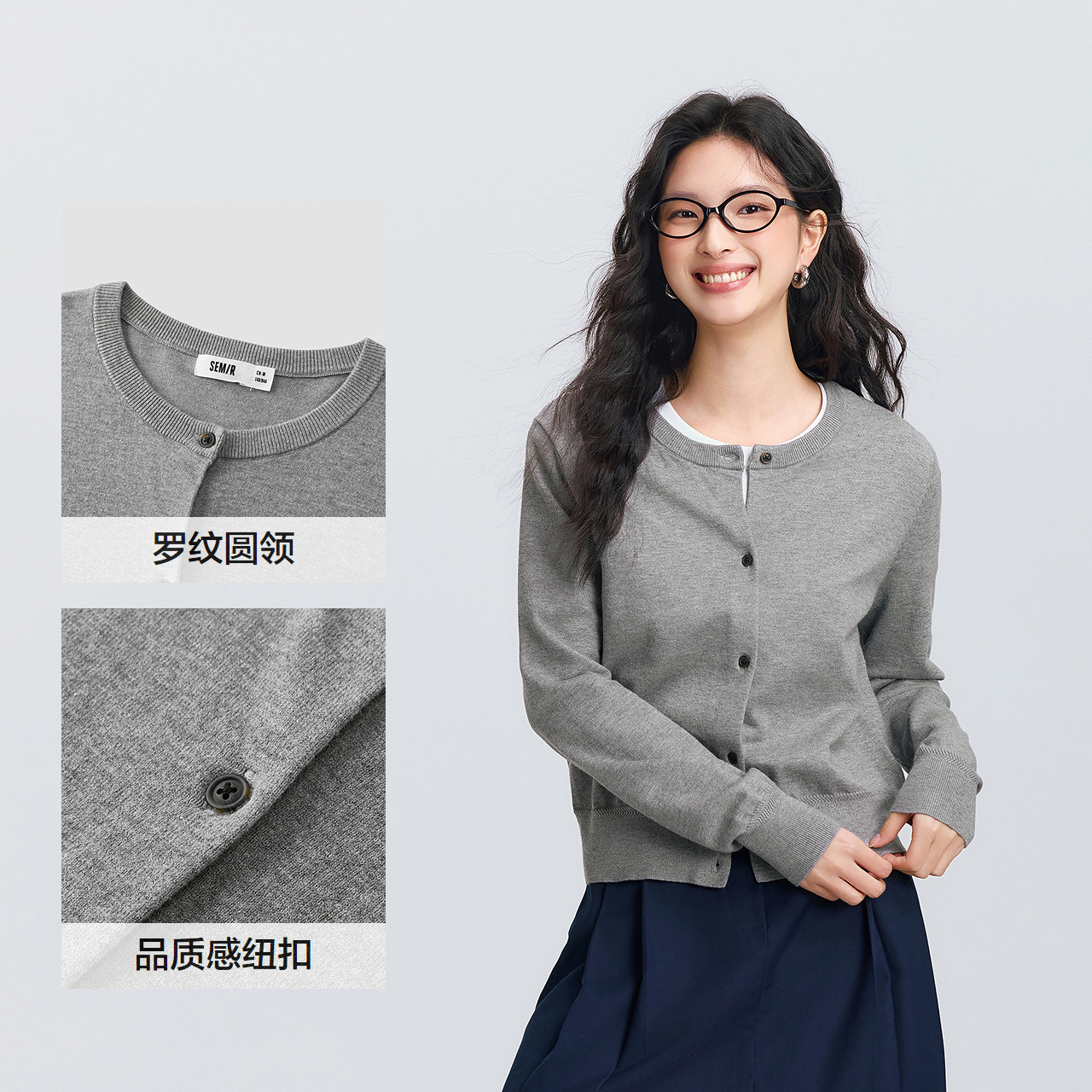 商场同款 2025新款 森马针织开衫 春季 基础圆领上衣 女短款 森柔毛衫