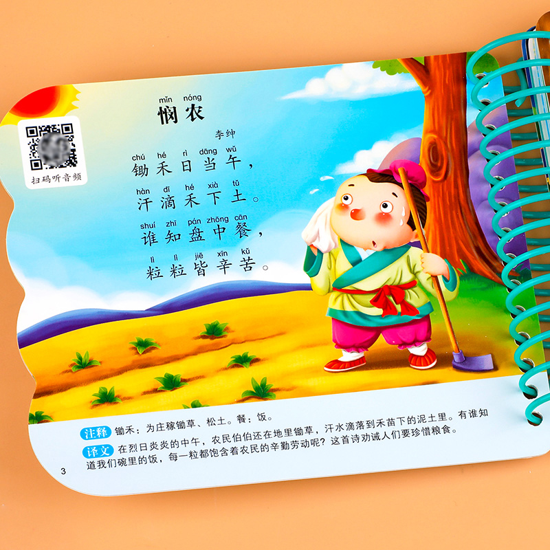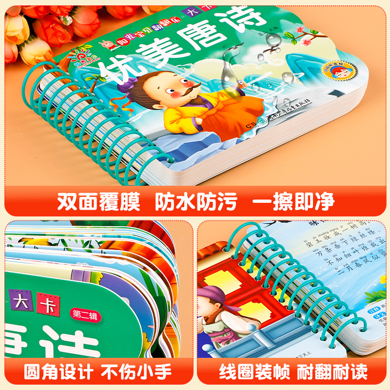 撕不烂唐诗书0到3岁宝宝启蒙认知书读背唐诗书3 硬壳纸板 6岁儿童益智早教翻翻书防撕大卡一两岁 优美唐诗 阳光宝贝翻翻乐大卡