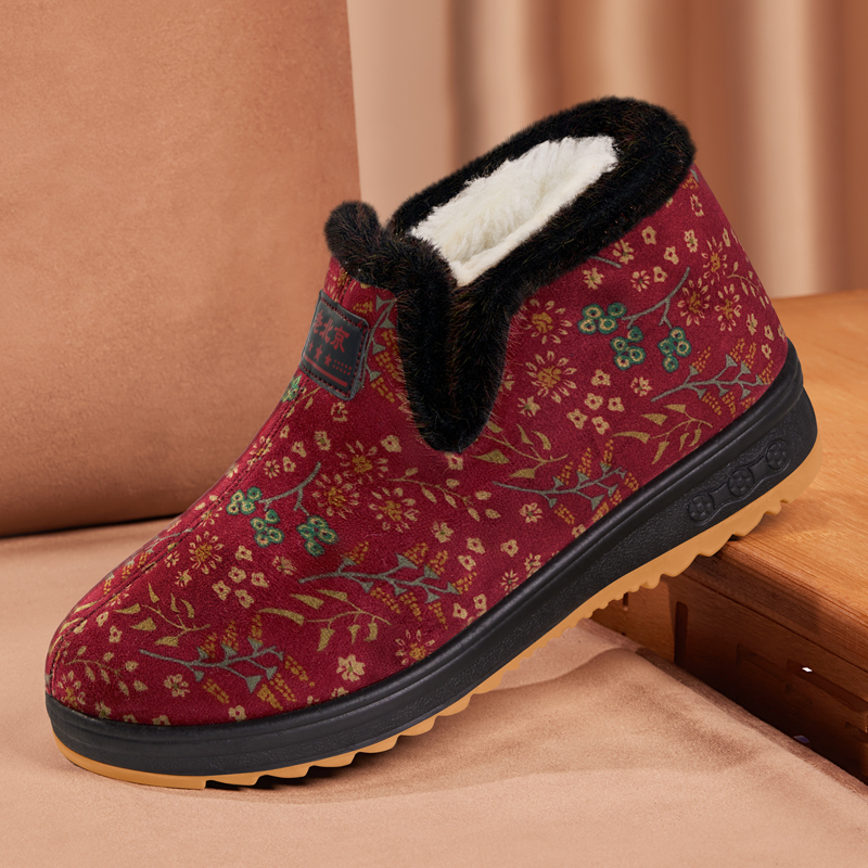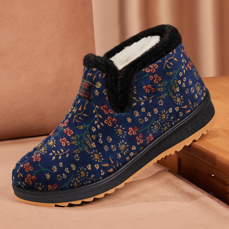 中老年新款 女加绒加厚羊毛防滑老北京布鞋 老人雪地靴 老人棉鞋 冬季