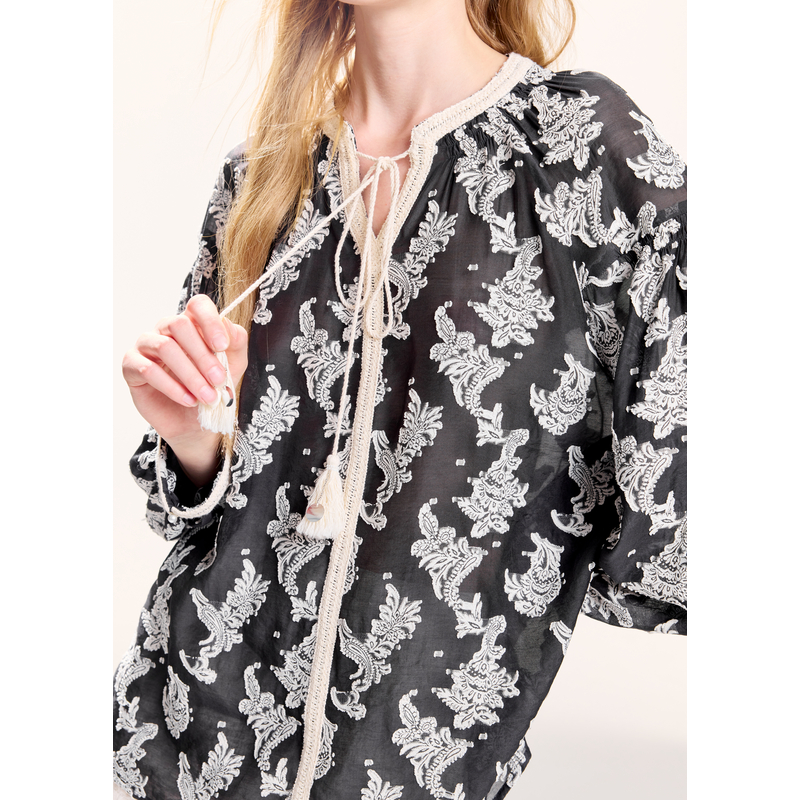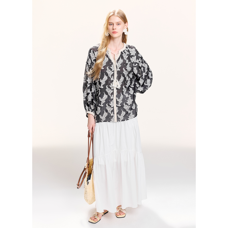 黑色灯笼袖 新款 上衣 女2025秋季 可可尼cocoon波西米亚风度假雪纺衫