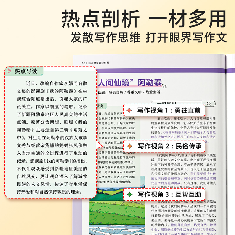 时光学热点时文素材积累作文热点素材初中7 9年级好词好句好段优美句子积累大全语文优秀同步写作技高分句段落素材积累范文书