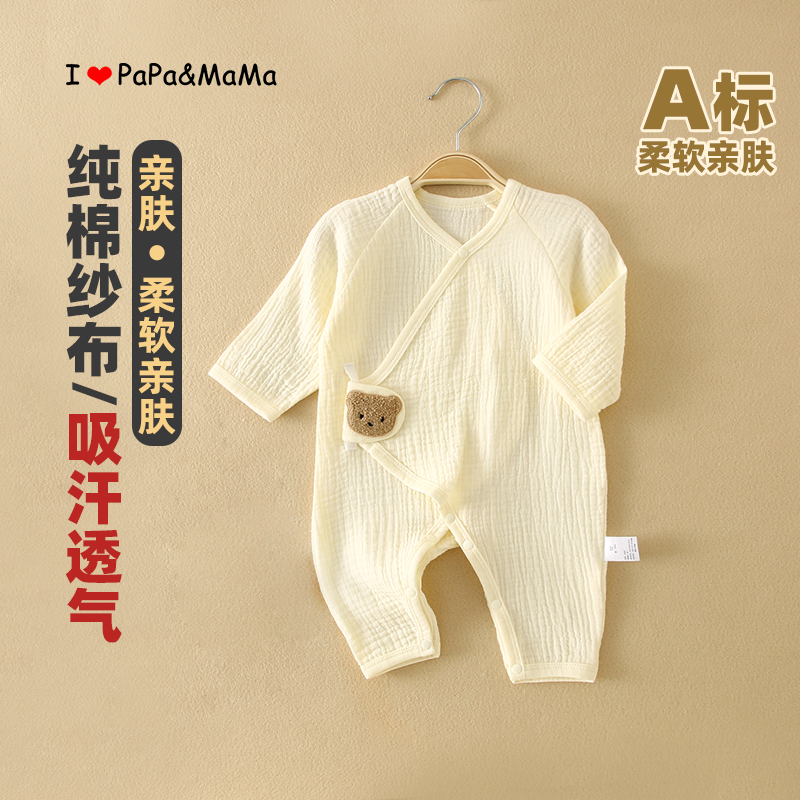 男女孩空调服春装 纯棉宝宝长袖 薄款 婴儿衣服新生儿纱布连体衣夏季