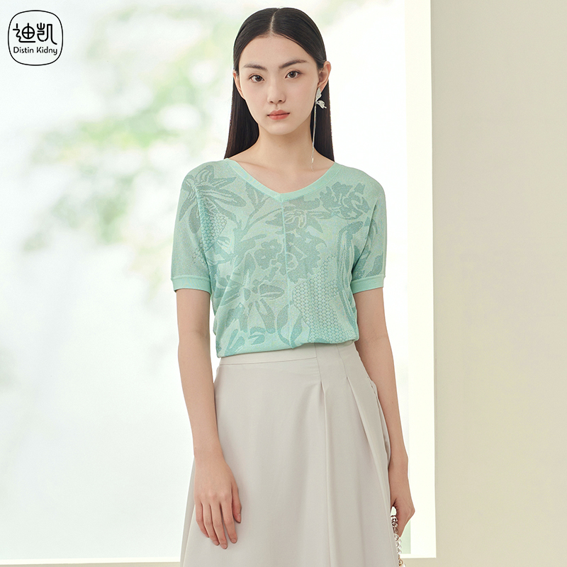 Kidny 修身 迪凯国风短袖 女夏新款 显瘦气质上衣 针织衫 Distin