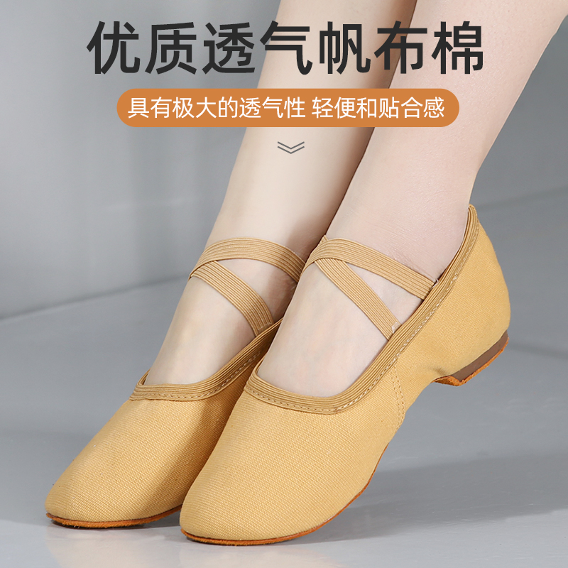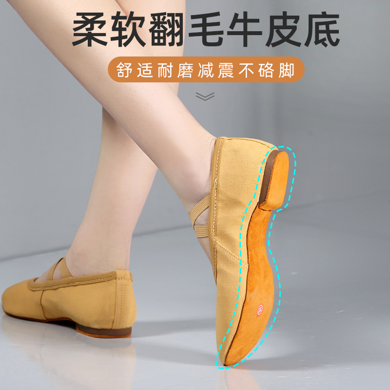 女软底练功鞋 肚皮舞鞋 低跟教师鞋 芭蕾舞鞋 形体 带跟古典舞鞋 舞蹈鞋