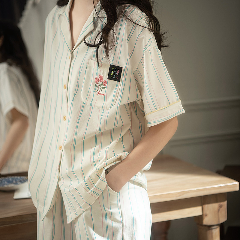 马克公主睡衣女夏天纯棉可爱少女套装 条纹小个子家居服 2025年新款