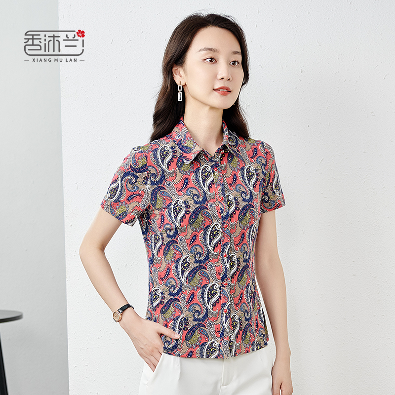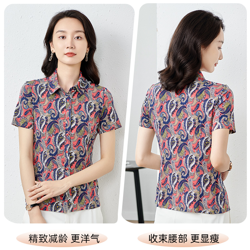 女上衣气质高贵减龄大码 衬衫 针织透气衬衣 短袖 香沐兰中老年妈妈装