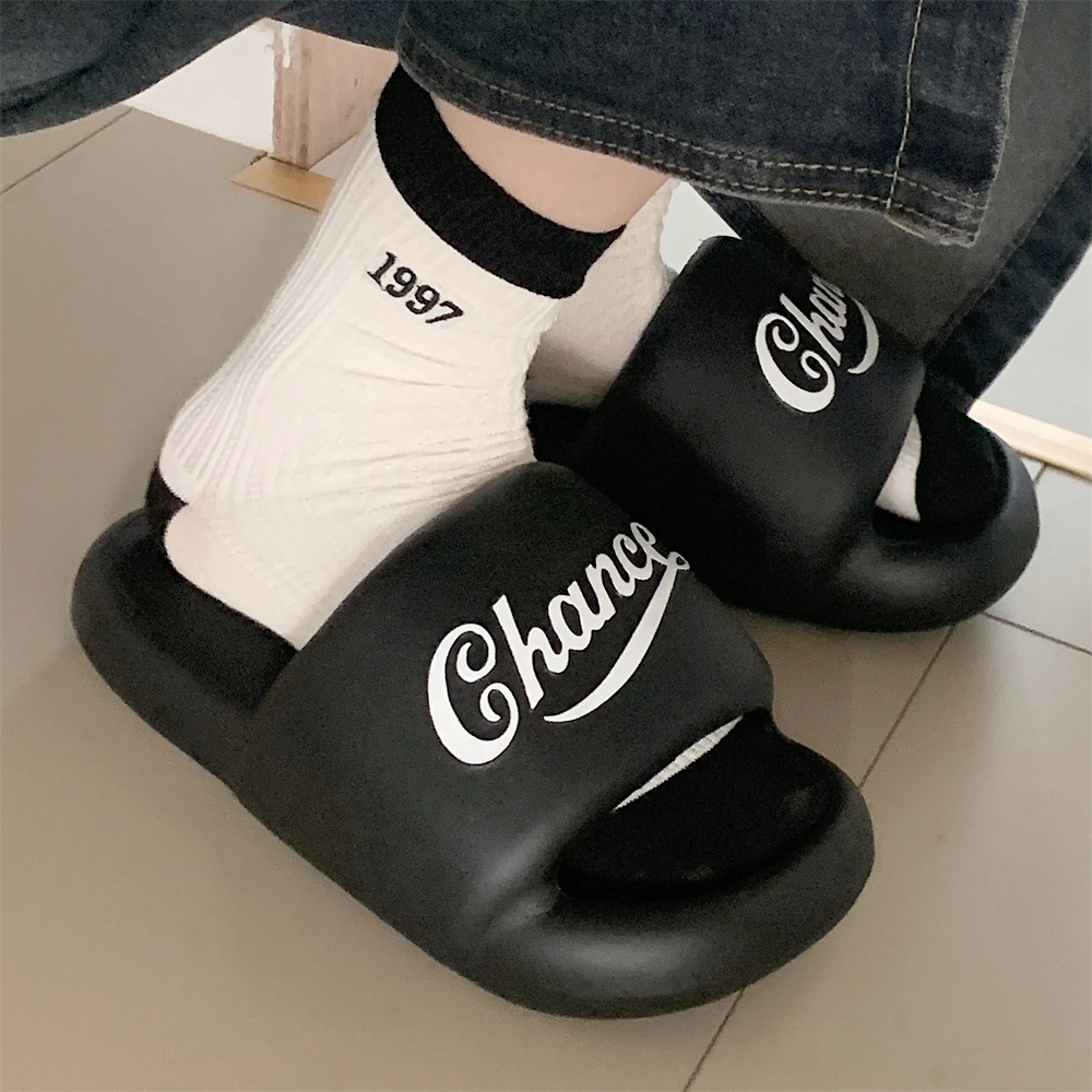 户外休闲运动风踩屎感软厚底凉拖鞋 夏季 男女 英文情侣拖鞋 潮酷个性