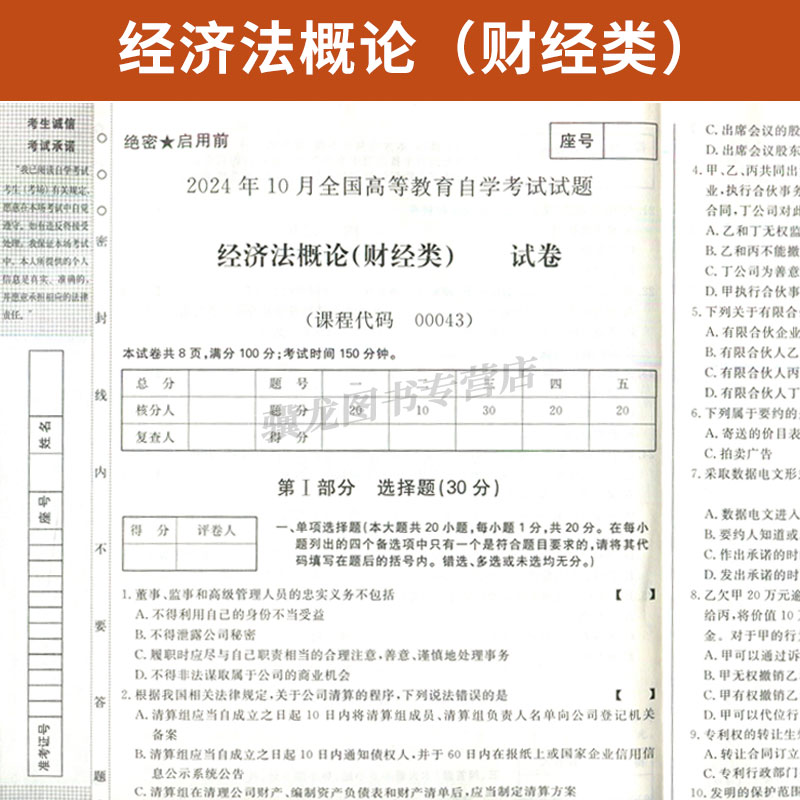 自学考试教材自考通历年真题试卷辅导书00043经管类专科书籍0043经济法概论2025年成人自考成考成教中专升大专高升专复习资料