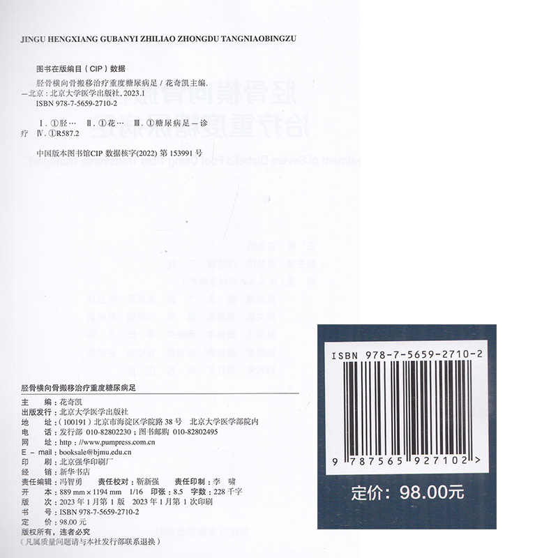 北京大学医学出版 正版 花奇凯 胫骨横向骨搬移治疗重度糖尿病足 社9787565927102 现货