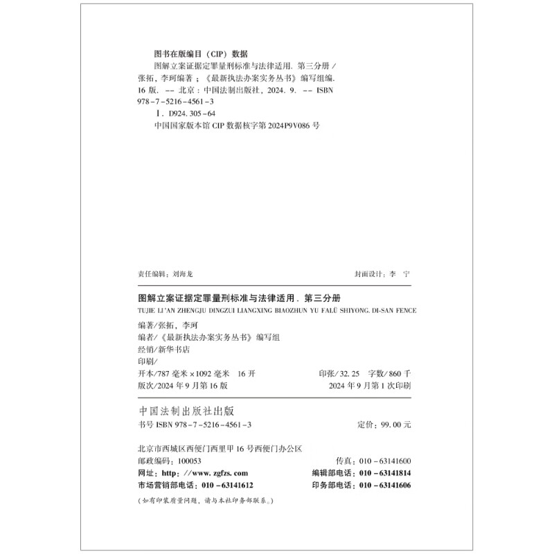 最新 9787521645613 第十六版 社 法制出版 执法办案实务丛书 李珂 张拓 第三分册 图解立案证据定罪量刑标准与法律适用 2024新正版