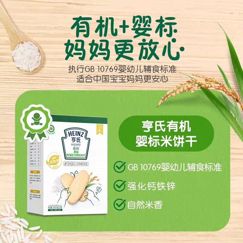 亨氏原味有机婴幼儿强化钙铁锌饼干宝宝零食低敏无添加米饼干