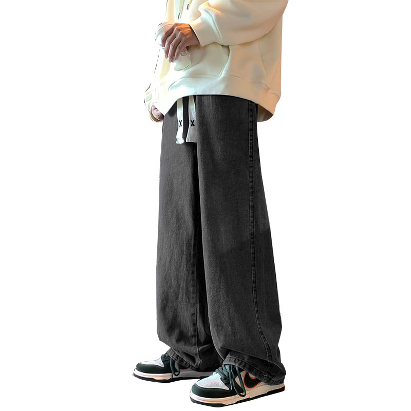 男宽松直筒阔腿vibe长裤 复古高街松紧腰牛仔裤 子 美式 Kuvine秋冬季