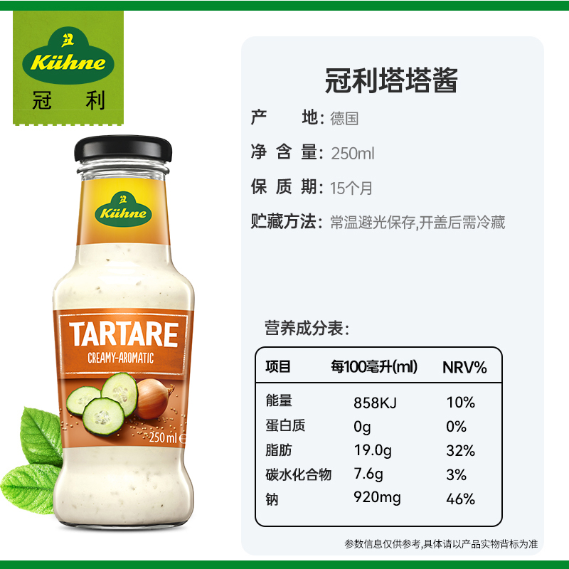 德国进口冠利塔塔酱西餐烘焙鞑靼式 沙拉酱油炸鱼薯条调味酱250mL