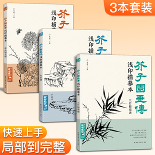 芥子园画传浅印描摹本兰竹梅菊草虫翎毛山水谱中国画入门零基础书籍白描画稿线稿临摹本超级线条初学者工笔画自学教材 3册全套