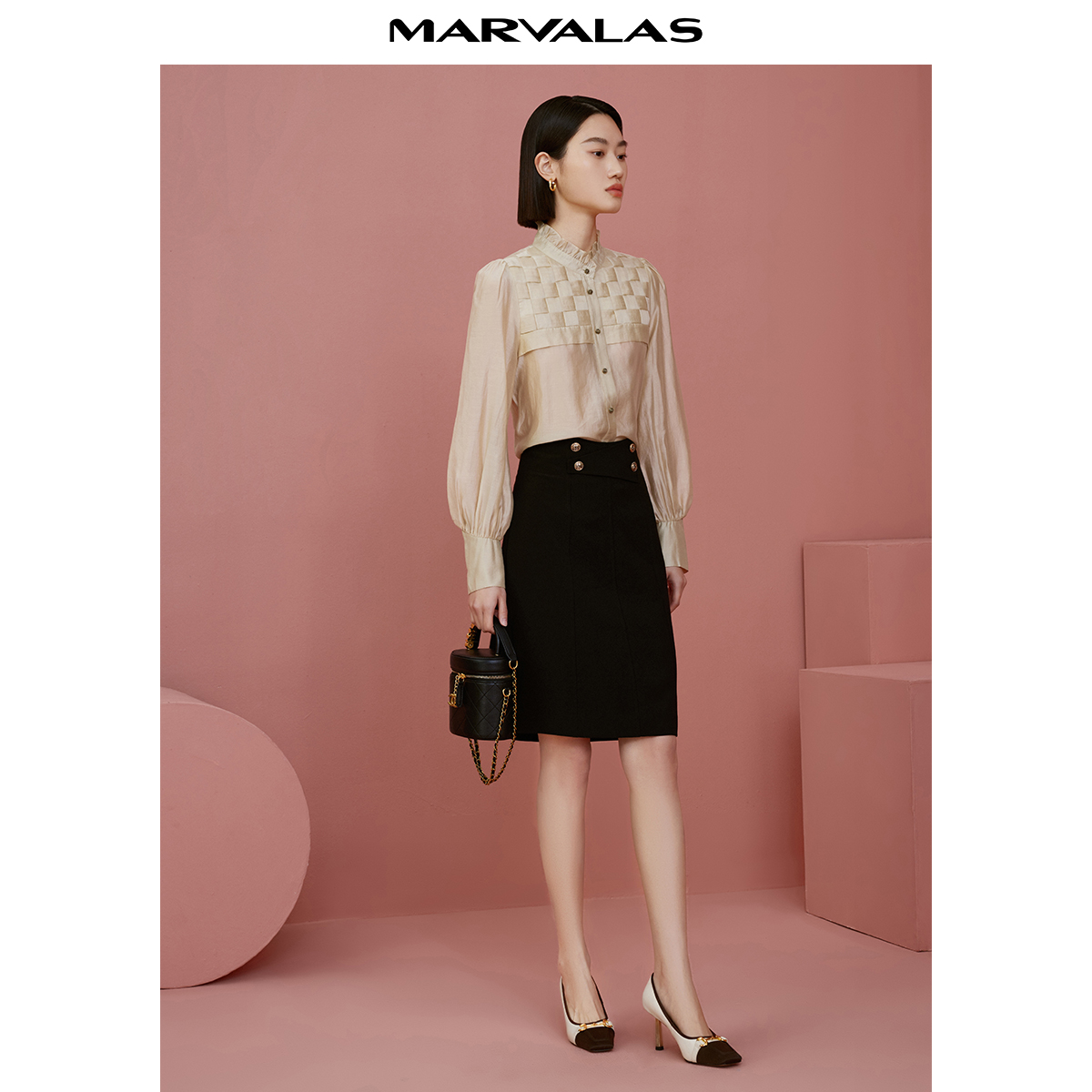 时髦丝绒鱼尾裙女MOFAN摩凡2025秋冬款 可可棕遮肉高腰半身裙显瘦