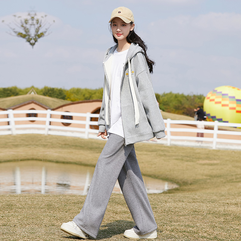 洋气高初中学生青少年加绒卫衣套装 运动套装 时尚 2025新款 少女春装