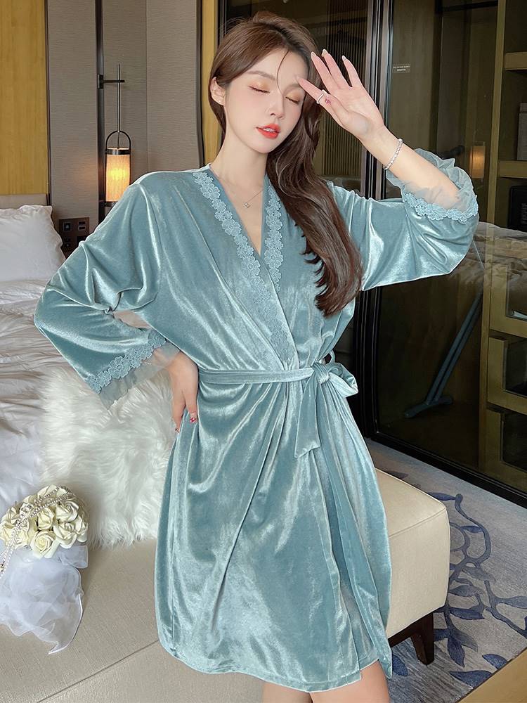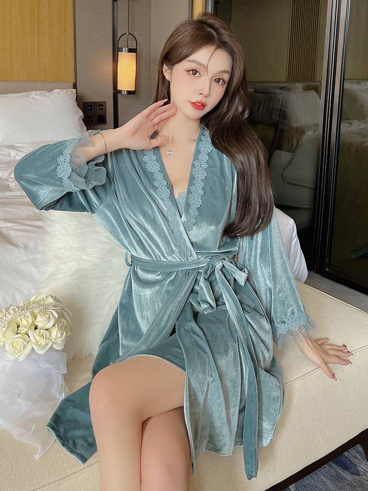 大码 春秋开衫 女士家居服 加厚珊瑚绒睡衣女冬法兰绒加绒套装 秋冬季