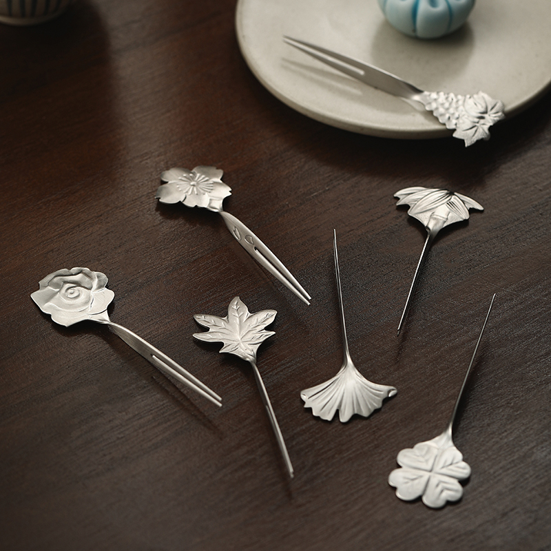 日本进口304不锈钢水果叉簪型水果签家用和果子小叉子甜品蛋糕叉