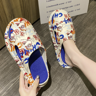 女外穿夏季 室外百搭沙滩鞋 时尚 包头凉拖鞋 厚底踩屎感新款 半拖鞋